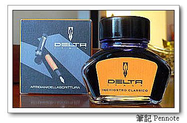 在台灣不知道是什麼原因Delta的墨水非常少見,在日本之行偶然買到了一瓶Delta的墨水。瓶身大小與Pelikan的老式4001 30ml差不多。外盒特別強調是義大利製。這個包裝感覺延續著Delta最成功的系列的用色。比起那些老得沒有創新能力的品牌,義大利的Delta正在創造屬於自己的歷史。