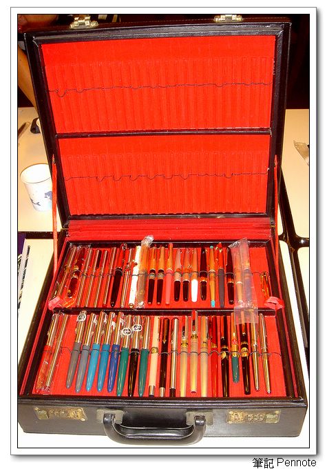 從上次出國以後已經好幾個月沒有參加聚會了。中午終於排除萬難順利出發前往聚會。一到會場馬上看到一個巨型筆盒。一問才知道原來是Willy兄帶來的。原來Willy幫筆友出清收藏來籌出國的費用。筆盒裡裝著各式各樣的Parker鋼筆,在Willy兄熱情的介紹下對Parker有了更進一步的認識。接著看到玩家周兄帶著他的Cartier的錶筆,這筆雖然不是鋼筆,但高貴而特殊的設計一直讓我心儀不已,周兄也很大方的讓我小小的把玩了一下,筆真的是很別緻。接著又看Parker75型的西班牙沉船銀筆,這可是玩家所追逐的真正第一枝限量筆。實在難得一見。就在大家熱烈討論時,閣主林先生也到了,筆盒一打開馬上就看到146的示範筆,以及146銀筆。看過這些好東西,真的不想碰其他的146了。特別是146示範筆,真的是有種致命的吸引力。接著陳兄也帶著夫人駕到了,最近陳兄正努力的研發賽路珞筆桿的維修之道,已經大有進展,陳兄也很慷慨的分享他的研究成果,正當此時,我突然發現怎麼他的筆盒非常的特別,以前從沒有看過,原來是夫人用牛仔褲打造而成,堅固又耐用,是在太厲害了。用牛仔褲做筆盒應該是頭一遭吧,大家紛紛建議要量產,甚至發行限量版。就在此時前閣主明哥也到了,明哥可謂是手工達人,擅長用各式各樣的獸皮打造各樣的筆盒。好像每次看到的筆盒都不太相同。大家也對筆盒的素材做了一番討論。當然筆閣聚會,阿希兄的收藏一定不能放過,除了Montblanc特殊149筆身外,外意外發現了一支platinum已經絕版的筆。筆環是日本傳統的技藝製成,阿希兄表示只能查到筆的名字,其他就一無所知,實在是迷一般的筆。最後李老閣主終於到了,帶著我的Dunhill Sidecar到了,這筆目前正以令人難以抗拒的價格銷售中。本次的聚會大家都帶出珍藏的好東西,實在收穫不少。除此之外小佩的幫忙修筆,還有一位筆友幫大家看看肩頸得狀況並提出一些保健的建議,在這裡都一併道謝了。