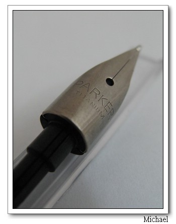 這個筆尖上的刻字是TITANIUM,是搭配美製派克75的鈦尖,不是用在T-1;T-1(1970-1971)是從握位到筆尖一體成形的.關於這種筆尖生產的年份時間,能夠找到的資料非常少,即使在派克75資料最詳盡的www.Parker75.com網站上,亦是語焉不詳.不過根據小弟查看於Parker75.com所記載的資料來看,這個筆尖一開始應該不是為了搭配Flighter筆款而生產的.美製Flighter(1974-1990)在派克75系列中算是比較低檔的產品,依常理推測應該不可能會了這個低檔的產品去開發一個新筆尖,而且還是製作難度超級高的鈦尖.1972年尼克森總統訪問中國時,帶了三枝超級限量款Apollo XV 75(或稱為Lunar 75, Lunar dust pen);其中的兩枝分別贈送給"姚文元"(上海市政府的代表;四人幫之中最後一位去世者)與"南萍"(時任浙江省革命委員會主任).這款Lunar 75上搭配的正是這個鈦尖!從時間點上來推測,在T-1停產前後,派克應該有考慮推出T-1的後繼款,除了生產了好幾款Titanium 75 prototype之外,剛好為了尼克森總統出訪中國製作Lunar 75,而生產了一批鈦尖.Lunar 75據說一共只有5枝,但鈦尖一批不可能只生產5枚;於是後來在美製派克75Flighter上,偶爾可以發現這個鈦尖.Titanium 75除了佩帶K金尖的原型筆之外,是否真的發售過市售版的Titanium 75鋼筆,目前仍無法確定.因為在當時的廣告上出現的是鈦製筆蓋與筆身的簽字筆(felt-tip pen),而不是鋼筆;另外,當年銷售派克75的人員中,有些說有賣過Titanium 75鋼筆,有些則信誓旦旦說從沒看過或推銷過這款筆.總之,這個派克75的鈦尖絕對是非常稀有–還是趁早收一枝T-1比較實在.鍾泳麟在他所寫的兩本鋼筆收藏的書中,都對T-1推崇備至…(本文參照Parker75.com與小弟自己臆測所寫,大夥看看就好,不必太當真:)