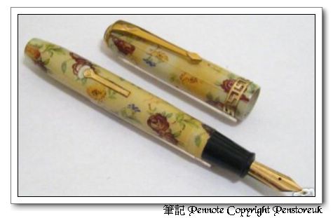 許多書上都有CS22的照片,但多半僅提到他的稀有性很少有其他的敘述。看到CS22就會讓我想起Namiki。早在1925年並木龍介(Pyosuke Namiki)就開使用日本傳統的漆器技術於筆管上。相對於日本,同時間的美國筆則是在金屬上做雕花甚至鑲鑽的裝飾。但在短短的幾年內,這樣的設計就傳到英、美等國。到了1930年Dunhill Namiki就問世了。我感到很困惑的是英國既然在1930年前後就見到了在筆桿上繪畫的美麗,為何一直到了1950年代才由CS製作了這支筆?而且只做了一支。有種可能的說法是供料不易,怕麻煩是種可能。當然歷史是沒有如果的,但我還是會想到如果CS出了一系列的英國風系列,對後世會有什麼樣的影響?不過到了1950年代拉桿上墨也該走入歷史了,也許該說的是這筆生不逢時吧。