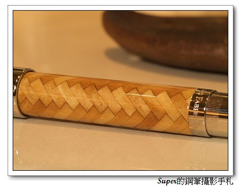 就是將看似平凡無奇之鑲嵌木材技法移植到鋼筆筆桿之上