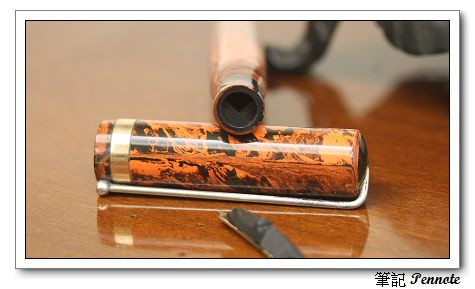 約在20世紀初,美國伊利諾州的人士Jay G. Rider設計了一種與眾不同的上墨方式。嚴格的說來這種上墨方式歸屬於滴入式上墨。不同於一般的滴入式上墨之處就在於握位的部份跟筆桿是連在一起,要上墨的時候並無需轉開握位。J.G. Rider特別之處就在於他的筆舌下方有個凸起之處,上墨的時候就利用筆夾頂住凸起的部份將筆舌拉出,拉出後可以看見一個扇形的凹槽(如下圖所示),從此處滴入墨水就行了。時至今日對於J.G. Rider筆款的資料並不多,只能在少數的古董筆圖鑑裡偶而看到。約略我們知道這是1905年至1920年間的作品(距今也有90至100年),設計者的思維完全與一般的筆廠不同,特殊的筆舌,筆夾,上墨極具原創性,再加上十分的罕見,也因此對於古董筆的玩家而言這是令人十分渴求的筆款之一。