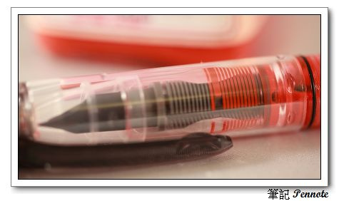 這款筆的出現直接挑戰了我一直認為理所當然的問題,高品質的筆整體的表現一定優於低價筆。但是我手上的筆很少有能做到放了一段日子再拿來寫也能立即的出墨。之所以不能立即出墨我個人認為是導因於筆蓋的密合度不佳所以放久了前端的墨水就乾掉了,這就有點像是瓶蓋沒有轉緊墨水蒸發掉了。如果經過很長的時間還是第一筆不乾掉,那麼把墨水儲存在筆桿中就跟放置在墨水瓶裡沒兩樣。如果是這樣的話,對於喜歡用很多顏色墨水的朋友是一大福音。許多少用的顏色常常因為少用,而最後乾在筆管或是吸墨器裡。利用這款筆的特性,墨水會乾掉的問題了得到了解決。