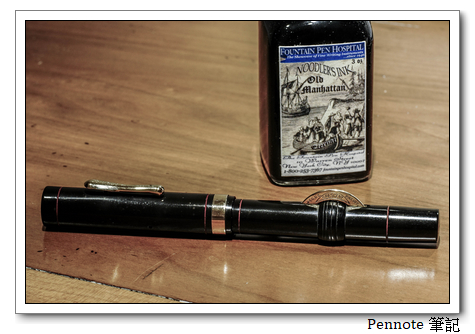 照片的筆是Conklin的Endura Crescent Filler。這款筆最早在1924年發行時叫Duragraph,當年Conklin對自己的品質非常有信心,對該筆提供了終身的保固,涵蓋了意外以及日常損耗。但數個月以後因不明的原因就改名成現在這款筆 Endura,兩款的辨識可以從比稈上的刻字分別,Endura從名字就能看出對品質的暗示,該筆生產約在1924到1925年間,當年有紅、黑兩色硬橡膠,以及為了男性和女性開發了幾種不同的尺寸,1925年時 Conklin決定專注生產拉稈上墨的Endura,停產了月牙上墨。所以這筆前後生產的時間也不過一年左右,所以並不常見。而今紅色硬橡膠款比黑色是貴上很多,當年不知為什麼沒有收到,既然黑色比較便宜,這次就優先收起來了。