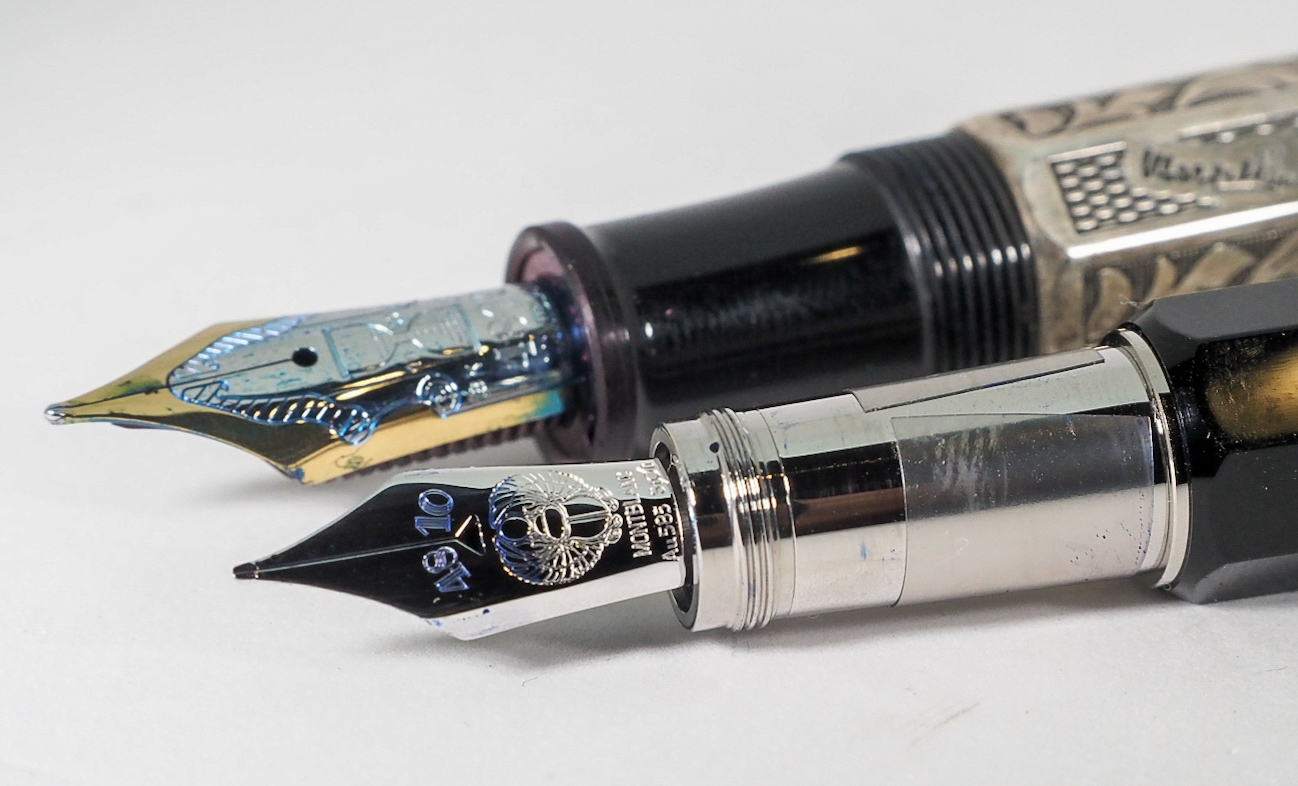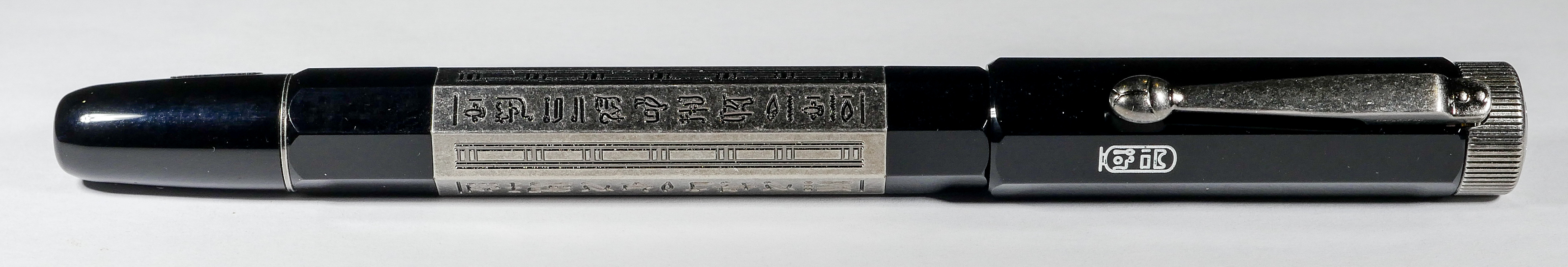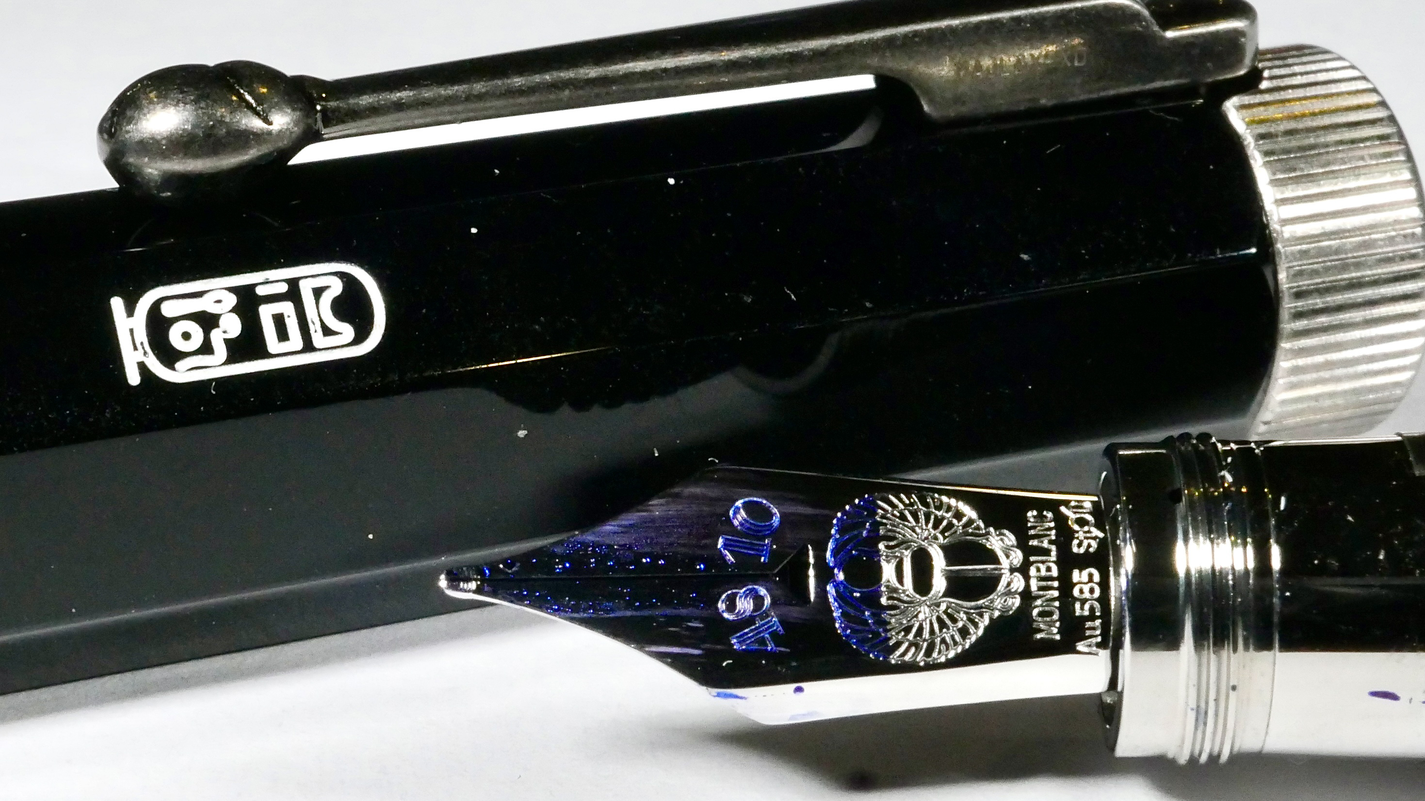 這樣的筆之所以引起了我的注意,首先是這樣的設計實在太經典。無論是藝術贊助者或是文學家系列都大受玩家的喜愛。其次金屬的筆桿(鍍钯以及釕產生古董的感覺)對我而言還是遠遠的優於黑玉樹脂(這應該是常識)。最終從過往的角度來看八角的萬寶龍的市場價值一直以來都相對優於一般的筆款。值得一提的是筆桿上的文字來自Hunefer所著的死亡之書 – Book of the dead,可惜沒有說明寫了些什麼。