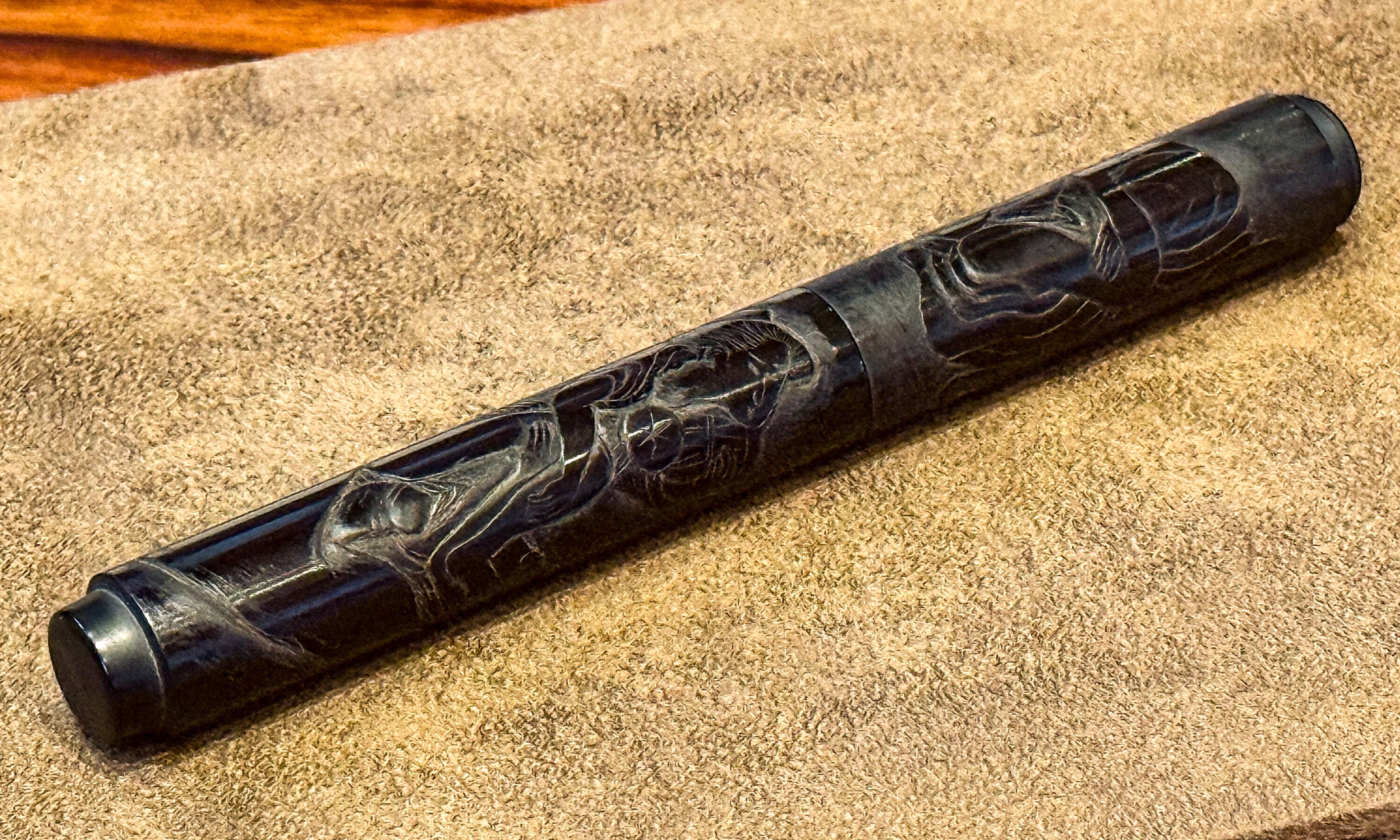 Pen-Box:賽璐璐跟壓克力都會有一點爭異性,比如說肺炎的時候大家都會噴酒精,酒精噴一噴有時候塑膠就裂開來了,像某S牌噴到酒精握位就裂了。後來 Pen Reuse 幫我用硬橡膠做了一個。