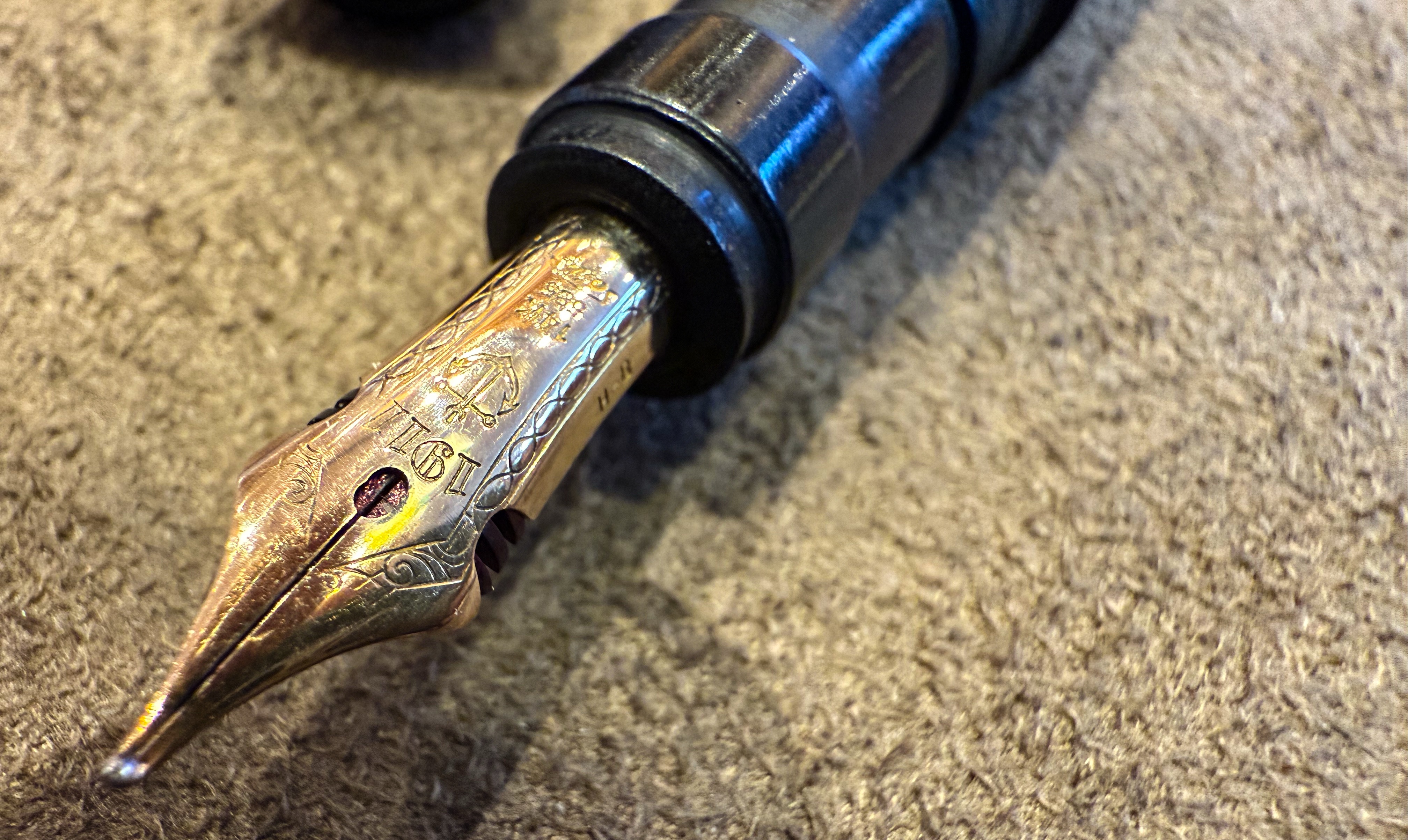 Pen-Box:比如說有時候客製的時候,會要求師傅幫忙研磨銥金點,但是不能夠做過頭,因為我們的習慣會改變,像我以前握的位置比較前面,後來就越改越後面,這時候我必須要留調整的空間。最好還是拿筆在師父前面看你的書寫角度,當場看你的狀況進行調整。