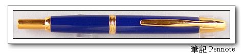 Pilot一直以來都是日本的鋼筆大廠,只是為何在台灣一直都很少見,這點我一直覺得很奇怪。這次介紹的筆是Pilot的作品Capless系列。顧名思 義Capless就是沒有筆蓋的意思。原理就是像自動原子筆一樣,按下末端的按鈕筆尖就會從前端推出,再按一次末端的按鈕,筆尖又會退回去,特別的地方是 筆尖的前端有一個小蓋子來減少墨水的蒸發。這筆就造型而言我並不是很喜歡,但這筆確有著一般鋼筆所沒有的便利,特別是在開會時。只要按一下就可以寫字,比 起那些蓋子要轉來轉去的筆,Capless的設計真的是很不錯。如果能將這筆再改良一下,用更便宜的筆身,應該能做出很方便每天使用的平價鋼筆。
