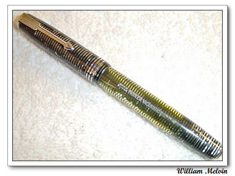 一直以來我們都在談視窗的透明度對於古董筆的價值是如何的重要。前幾天我在外國的網站看到一個熟悉的賣家在賣一支真空上墨。我抱著好奇的心態看了一眼,一見之下我真的嚇了一跳,如新的真空上墨,一般而言,真空上墨的筆桿要是能用目視看透我們就認為狀況還不錯。但這筆就特殊在完全不用耗費任何的眼力就能看透。百分之九十九看得到的筆都是琥珀色的,但這筆很明白的是淡黃色。從看到到寫信去買我只花了一分鐘,但還是晚了一步。看來玩筆除了要有好眼力外快速的反應力也是不可或缺。我一直在想著原始的顏色到底是什麼,除了這支筆以外我還看過另外的兩支Conklin也是黃色的透明視窗,也許做成結論還太早,但是我估計原始的顏色應該就是淺黃色。這些筆能維持原色因據說是因為還沒有上過墨。所以有幸收到這樣品相的筆友千萬就不要上墨了。到底墨水對透明的視窗會產生什麼樣的影響,又背後的原理是什麼?我還沒找到資料,知道的筆友也歡迎告知。謝謝。最後特別感謝Bill分享這些照片。