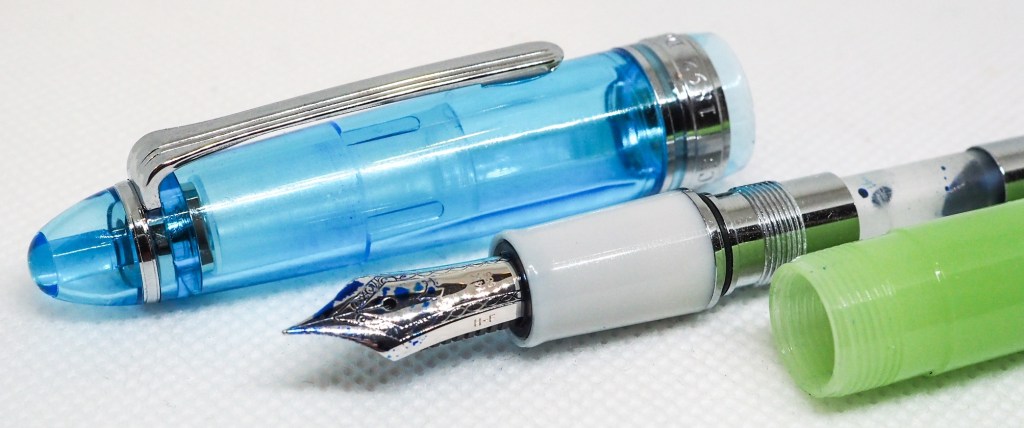 其實很不喜歡只有改變配色的限量筆。因為我覺得限量兩字應該值得更多的心思。如果只是換顏色基本上我是不會買單的。儘管如此還是必須承認還是有那麼幾次會被很特殊的配色所吸引。寫樂與大丸藤井這次撮合作的羊之丘展望台算是令人眼睛一亮的作品。主題是要顯示札幌的風景。從第一次看到這款就覺得很特殊,我已經看過無數的筆,所以一般的筆是不會吸引我的目光的,這次的天空藍筆蓋很漂亮,以及草綠般的筆桿也很特別,直到查了資料以後我必須承認這是一個相當不錯的設計,筆蓋的藍代表天空,握位的灰代表展望台,草綠色的筆桿則是反應的下方的草地。特別的是筆尖印著北海道。聽說限量150支,對我來說是件好事,不會搞得朋友人手一支。最是我感到蠻驚訝的,原來這麼少的量就能客製限量筆,特別是處理筆尖的方式,我很喜歡。