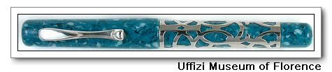 接著Super兄向我說明的這筆的典故。原來Uffizi Museum位於義大利的Florence,是世界上最古老的博物館之一,保存著許多文藝復興時期重要的作品。但很不幸的,在1992年竟然遭受恐怖份子的攻擊,而部分的建築物也因此遭受毀損。之後Visconti取得博物館當局的授權,發行了以博物館為名的鋼筆,同時該筆的所得更用來資助博物館的重建。Super兄表示因為機緣巧合在博物館受損前曾有幸一遊該博物館,他表示看到該筆就令他聯想到博物館收藏曾帶給他的感動,而恐怖攻擊所造成的損害更令他惋惜不已。所以這筆對他的意義非凡。而且對Visconti而言這也是的成名之作。因此Super兄也是費盡了千辛萬苦才找到這罕見的筆。