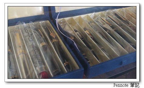 繼續逛著,我看到了可以裝100支筆的筆盒,我想說有沒有什麼幾百支的,老闆告訴我100隻以上就要訂做了, 我本來想說如果把筆盒疊起來不就得了,老闆說並不是這樣設計的。想到還要回台北,我就覺得很麻煩,可是我現有的空間已經完全都放不下了,然後我就到附近走來又走去感覺後來老闆被我的誠意打動答應要破例幫我外送,之所以不外送的原因是怕寄送的過程損害。給了我名片之後就等我這兩天聯絡他。筆盒很漂亮,倒是我意料之外的收穫。