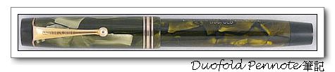 彈性筆尖一直是玩老筆的重要原因之一,多變而美麗的線條更是讓人對老筆無法割捨。只是老筆並非只有彈性筆尖。即使是彈性筆尖也有不同的彈性等級。但 老筆中的非彈性筆尖其實有許多也是玩家所追逐的。比方說Mabie Todd的Eternal系列便是非彈性筆尖,而蒐藏價值遠遠高於一般同品牌的彈性筆尖。有些玩家更認為老筆並不合適於現代人的生活。圖中的筆是 Parker的Duofold,筆尖就我認為寫起來 就像寫極細的簽字筆一般,更棒的是他的筆尖非常的堅硬,拿來寫覆寫紙是玩全沒有問題。就我所知市面上應該沒有同樣細的簽字筆能寫在覆寫紙上而不損及筆的。 這例子說明老筆在現代人的生活中一樣可以發揮極佳的功能。